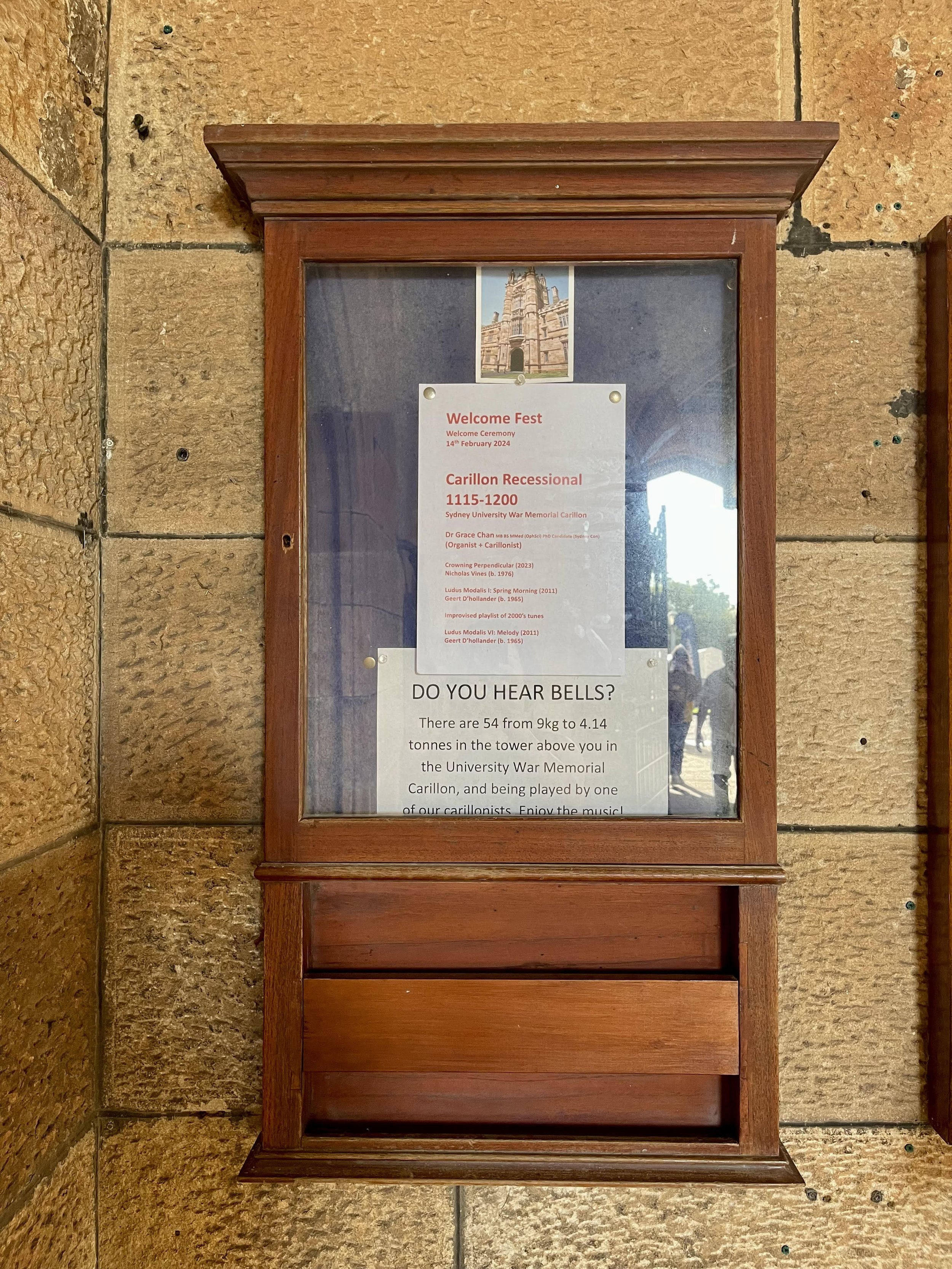 Venue: War Memorial Carillon, USyd, Camperdown, NSW, Australia