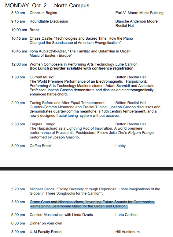 Presentation: “Inventing Future Sounds for Ceremonies. Reimagining Ceremonial Music for the Organ and Carillon”; included Crowning Perpendicular